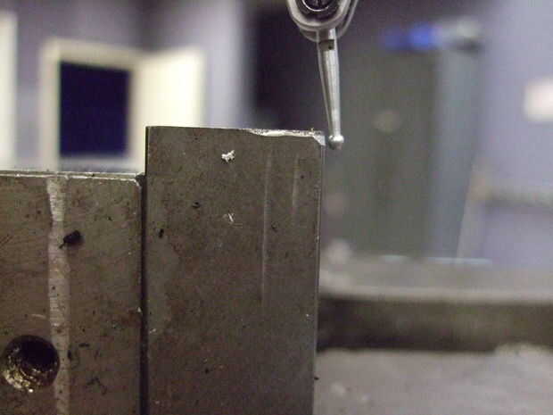 La X, Y y Z ejes del molino para colocar el extremo de la bola del indicador de prueba de esfera en la parte superior izquierda interior de la parte posterior de la prensa de tornillo de ajuste.