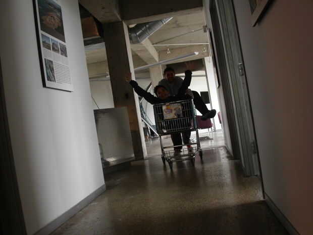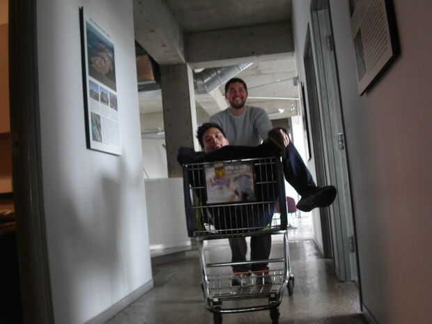 Carreras de carro comercial de dos personas por los pasillos es también una adición emocionante a cualquier parte de la oficina.