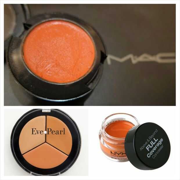 Saturación más ligero va a necesitar un corrector más suave de albaricoque o melocotón, mientras más oscuro saturación tendrá que ir a la derecha para un corrector naranja vibrante. Casi cada marca en cada punto del precio lleva un corrector en el color que necesita, de beneficio (cheque hacia fuera la goma de borrar), NYX (que se encuentra en tiendas de artículos para belleza, objetivos y grandes almacenes en todo el mundo), para MAC, Bobbi Brown... la lista es interminable! Mi favorito es el Eva perla salmón corrector. La que llevo en mi equipo tiene tres colores de corrector anaranjado, adaptados a la luz, medio y oscuro saturación por lo que puedo cubrir ojeras a nadie no importa lo que su tono de piel. Ella también lleva una versión que realmente trata a las causas de las ojeras y un excelente compacto de corrector dual que tiene el corrector de color salmón y un corrector de color carne para iluminar y para cubrir otras áreas en la cara que necesitan ocultar.