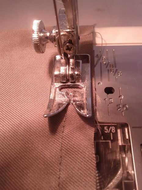 (En esta foto, la puntada se haya hecho. Observe la posición de la aguja y el borde de la tela).