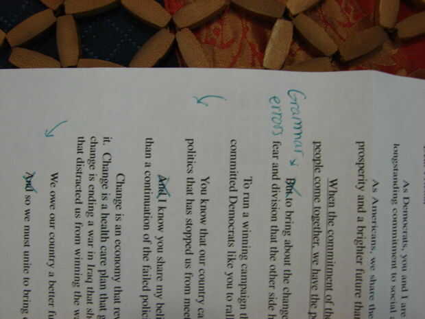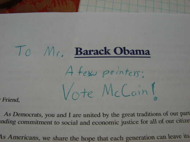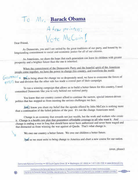Ir a la derecha, a través de la carta del candidato. Si es de ama de Obs, te llena de errores gramaticales, éstos señalan. Si de McCain... doodle en él!