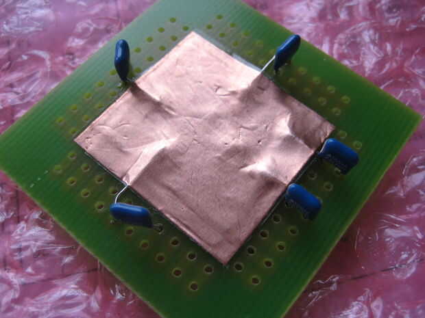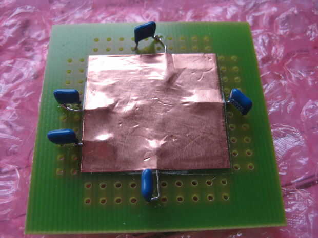 Una vez que estés feliz que el plano de tierra está bien aislado debe quedar el segundo pedazo de cinta de cobre en la misma como se muestra en las imágenes de abajo.
