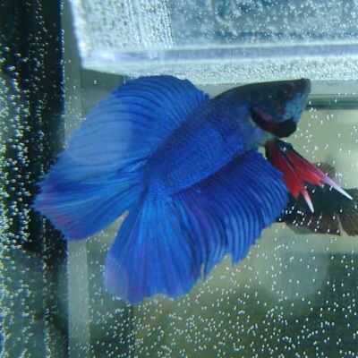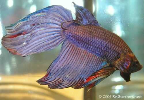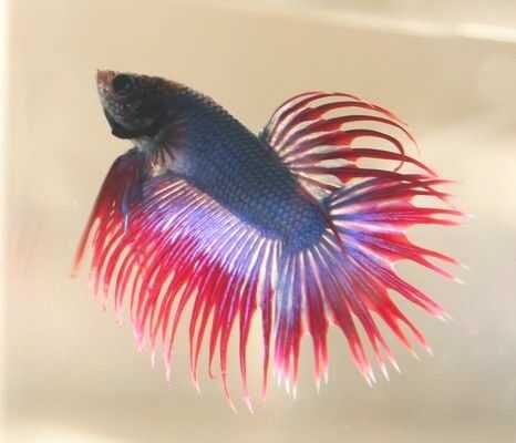 Bettas vienen en todo tipo de colores y variedades en forma de aletas. Más comúnmente visto en tiendas de mascotas son la veiltails.