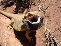 Dragones barbudos se encuentran en Australia en desiertos y bosques. En la naturaleza que evadir a los seres humanos y a menudo suben árboles de los depredadores. Cuando se enfrentan a un depredador como un dingo o un pájaro, serán a veces soplo-para arriba y silbido que las hagan aparecer más grandes y realmente son. Aunque generalmente no muerden son capaces de morder. Los machos tienen barba negra durante la época de celo para atraer a las hembras.