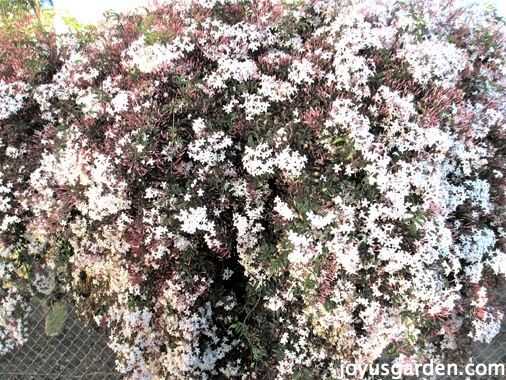 Si una planta tiene un programa de televisión sería: "Todo el mundo ama a jazmín". Todo el mundo pero yo y un puñado de mis compañeros jardineros que es. El objeto de rosa jazmín, también conocido como el Jasminum polyanthum, adoración es las flores de olor dulce que aparecen aquí en invierno/comienzos de primavera y cubren completamente la planta en masa.