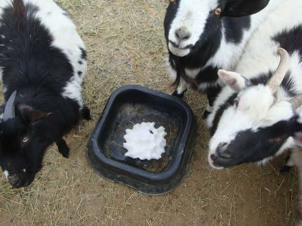 Sus cabras necesitan acceso a limpia y agua fresca en todo momento! Cubetas o tinas superficiales hacen recipientes adecuados, siempre y cuando las cabras no se encuentran en peligro de caer durante períodos de "desmayos".