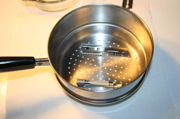 Después de su maquinilla de afeitar de seguridad ha sentado en una olla hervir agua para un tiempo retirarlo el quemador. No agregar agua fría a la olla, simplemente siento lo al lado por un tiempo hasta que puede recuperar las piezas con las manos. Agregar agua fría al instante podría dañar su equipo.