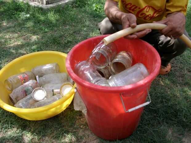Frascos de conservación son ideales para preparar seta spawn. Debe ser capaz de encontrar 1-2 frascos de litro en su local conserva salida (encontré utilizando 1 litro frascos mejor para encajar en la olla a presión/autoclave). Si no puede comprar frascos adecuados, entonces viejos tarros de reciclaje es aún mejor (hemos utilizado 1 litro aceitunas frascos). Asegúrese de que limpiar sus tarros, dentro y por fuera.