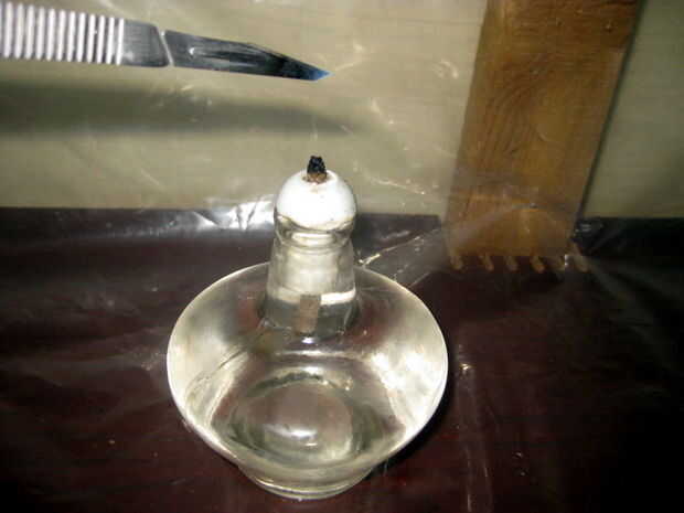 Tomando la seta por su base, con cuidado lo escupo en dos. Colocar la seta (exterior abajo) sobre una superficie limpia, y asegúrese de mantener el interior tejido de tocar nada. Esterilizar la hoja de bisturí manteniendo dentro de la llama del quemador de alcohol. Levante la tapa de la caja Petri y enfriar la hoja de bisturí colocando centralmente en el agar. Con el bisturí, corte con cuidado una pequeña plaza del tejido seta recién expuesta. Coloque el cuadrado de tejido centralmente en el agar y la cubierta con la tapa de la caja de Petri. Desea la tapa con cinta adhesiva (con una cinta limpia respirable) para reducir la posibilidad de contaminación. Repita el proceso, asegúrese de esterilizar el bisturí antes de cada transferencia. Dejar incubar las cajas Petri.