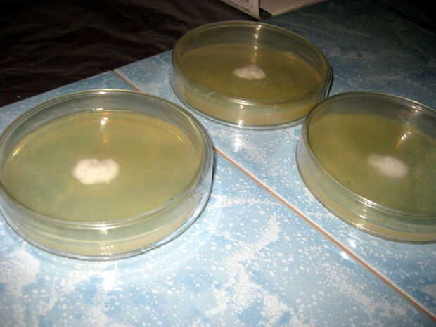 Nota: clonación repetidamente (sin la introducción de nuevas cepas) puede pueda replicar el descoloramiento, con posteriores culturas finalmente perder vitalidad y por lo tanto produce menos hongos. En contraste con la clonación, las esporas cuando germinaron (véase paso 8b), crear muchas cepas diferentes que compiten entre sí. Las características resultantes de hongos por lo tanto pueden variar de cultura a cultura.