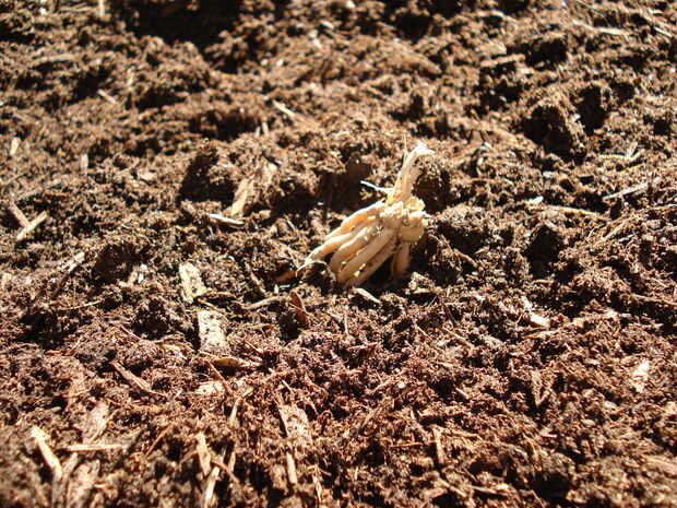 Después de esto sucede los tallos se secarán y ahora es el momento de corte hacia abajo y poner una capa de mantillo hojas sobre la cama de espárragos.