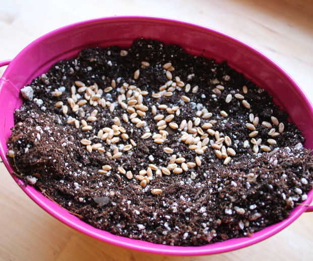 me vino la idea a crecer mi propio wheatgrass después de comprar una hierba de gato crecimiento kit para mi gato. Es bastante fácil, crece bien en el interior y no un montón de suministros son necesarios.Es una bebida popular en barras de jugo de whe