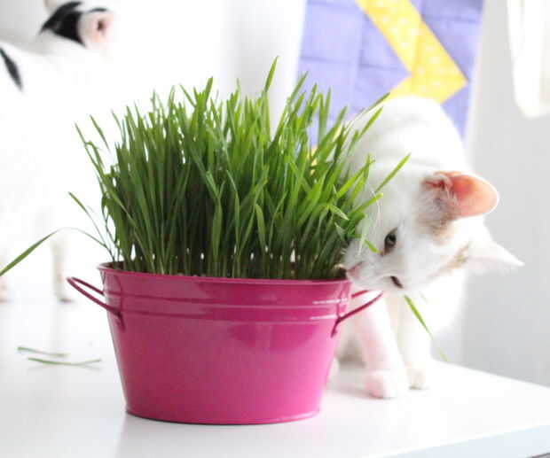 me vino la idea a crecer mi propio wheatgrass después de comprar una hierba de gato crecimiento kit para mi gato. Es bastante fácil, crece bien en el interior y no un montón de suministros son necesarios.Es una bebida popular en barras de jugo de whe