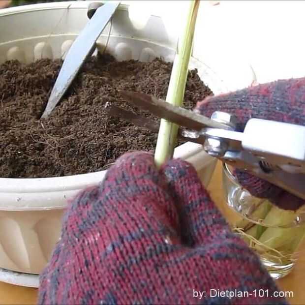 2. Corte cada tallos a cerca de 3 pulgadas, colocarlos en una olla grande con la mezcla de buena tierra o en el suelo.