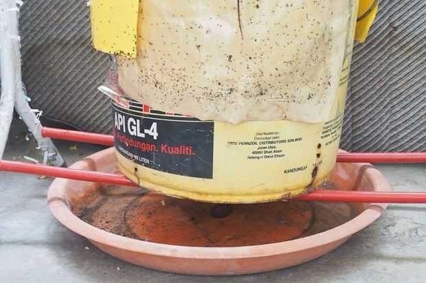 Si la botella está demasiado lejos de la olla, use el tubo de goma para canalizar el agua de la botella a la superficie del suelo.