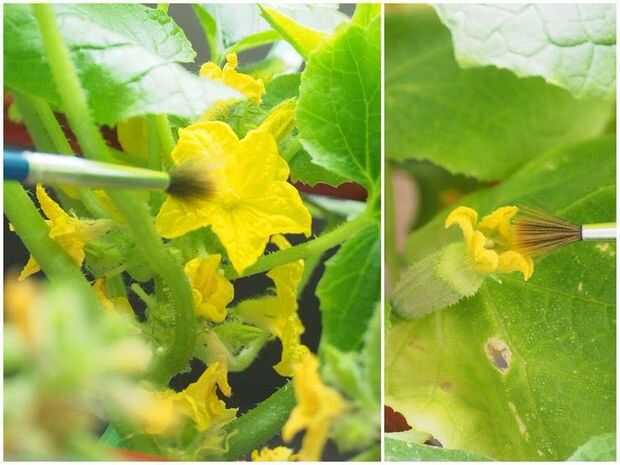 Una planta de pepino solo tiene flores masculinas y femeninas. Al aire libre, se tienen las abejas para ayudarle a polinate. Pero en el interior, usted tendrá a mano polinate ellos. Flores masculinas generalmente antes de las flores femeninas de la floración, pero no te preocupes falta de polen porque generalmente hay más flores masculinas que femeninas. Las flores femeninas tienen un subdesarrollado mini pepino detrás de su flor, mientras que una flor masculina no. Mientras que algunas personas pueden sugerir para mirar desde arriba, pero he experimentado lo que parece una flor hembra de la parte superior, pero detrás de los pétalos no veo ningún pepino mini.