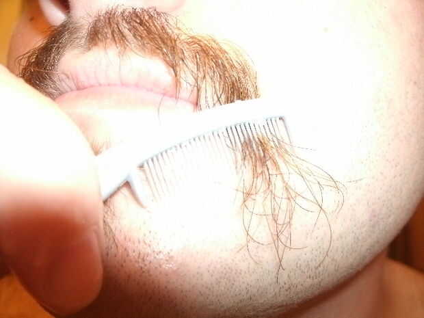 -tomar una pequeña cantidad de cera y cepillo a través de su bigote con su peine.