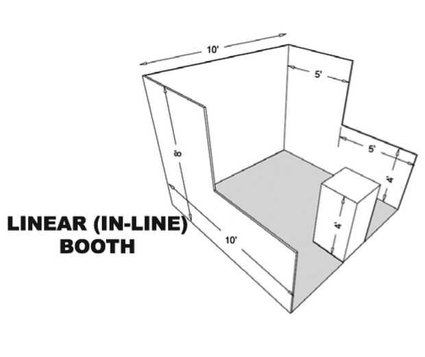 Una cabina estándar es cualquier stand de demostración comercial que comparte una pared común y colinda con otras exhibiciones en uno o dos lados. La cabina de una esquina es una cabina lineal expuesta a pasillo en dos lados. Se aplican todas las otras directrices lineales cabinas.