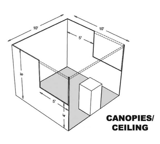 Colgar carteles que suspenden de la armadura de techo sala de exposición son, como un general regla, no permitido en la línea o cabinas lineales.