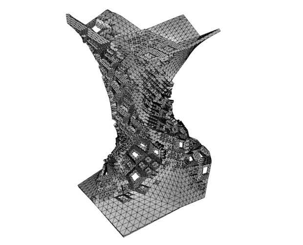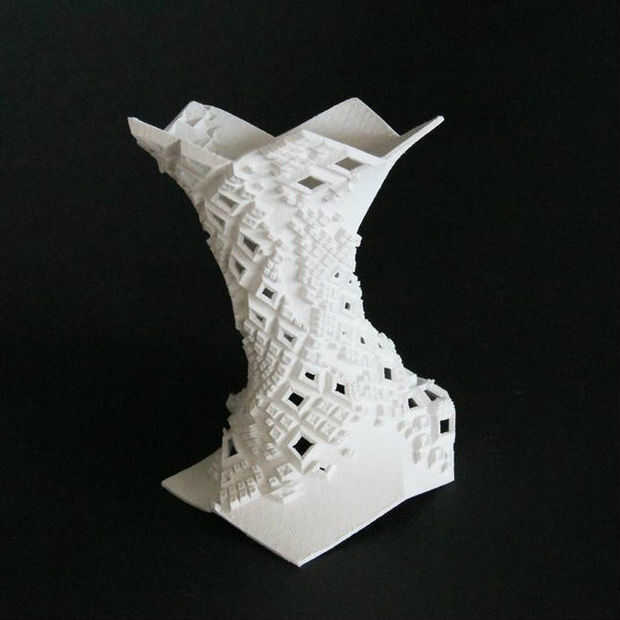 Esta impresión es un diseño generativo que utiliza la subdivisión de polígono recursiva cuando hace referencia a la superficie original. Esto fue creada usando Grasshopper y Python en Rhino, basado en el trabajo de Satoru Sugihara. Aquí está un vídeo sobre cómo crear el diseño de la impresión: vimeo.com/136581328