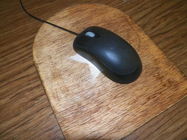 por fin!!!! El proyecto perfecto para agregar algunos pizzazz a su escritorio! Alfombrillas de ratón azul llano Obtén tipo de aburrido algunas veces, así que inventé mi propio! Lo que usted necesita: Pintura 8" por 10" de 1/4" pieza de madera Sierra de calar Papel de lija Pincel PAINTSTICK Revestimiento de madera Cepillo de la espuma Y una plantilla del diseño