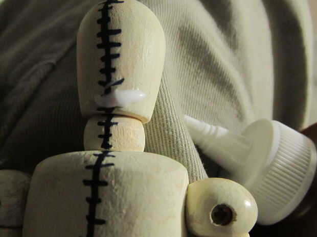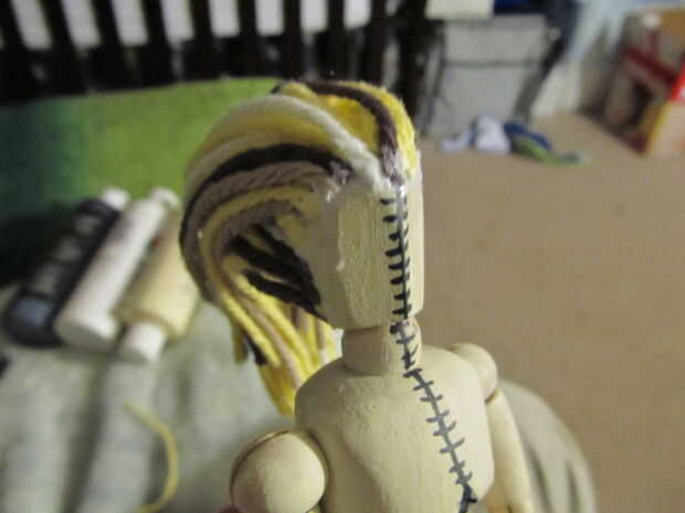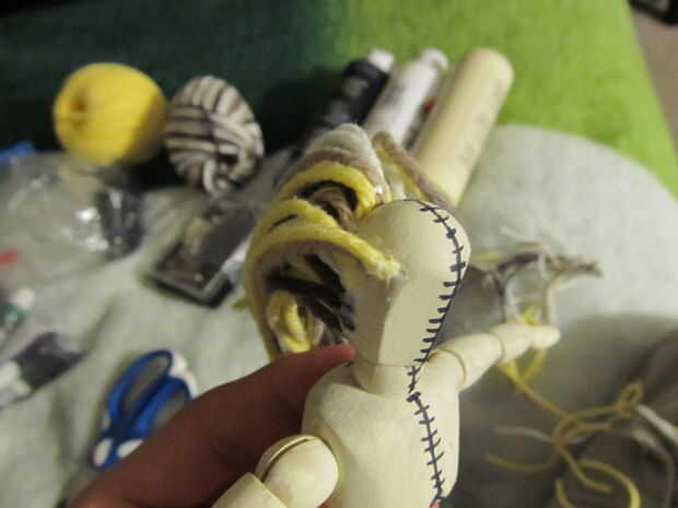 Luego utilizo pegamento adhesivo multiuso para poner en la cabeza de maniquíes.