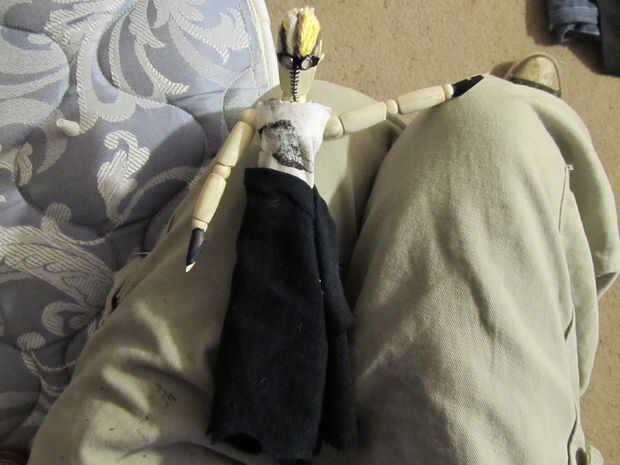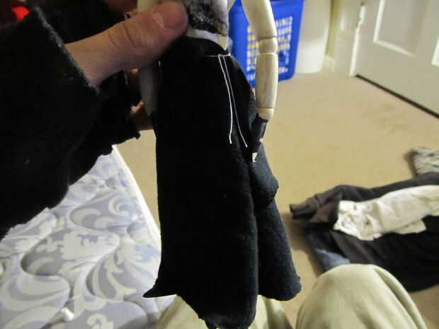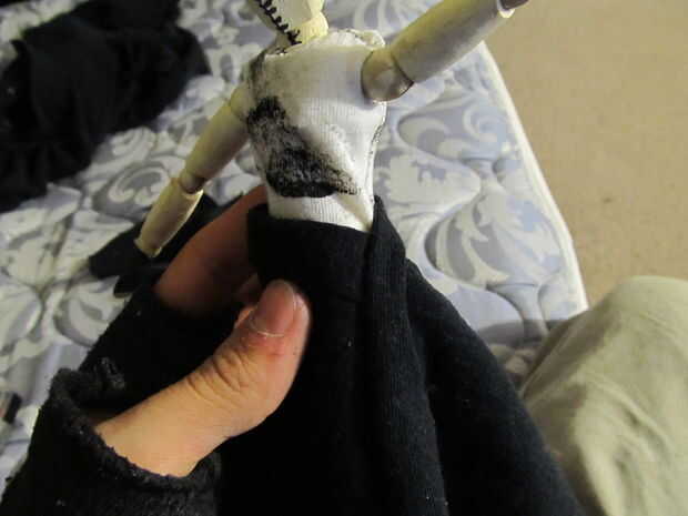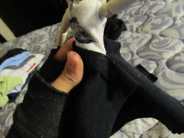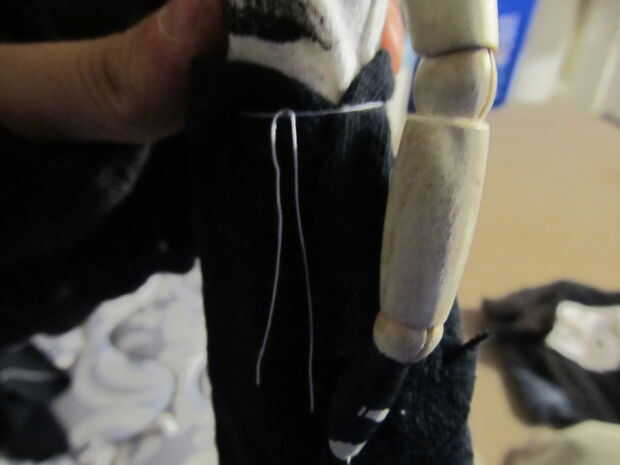 Luego cortar la tela extra que cuelga por debajo de los pies. La prenda debe ir a un lado, lo que es ver como si su constantemente por el viento.