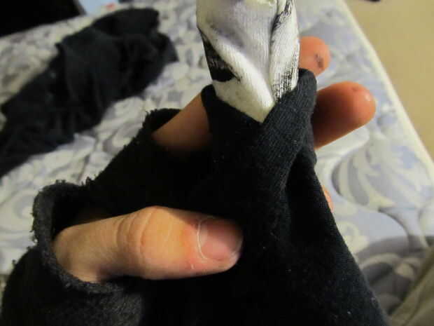 Para hacerlo, tomé una camiseta negra y cortar un rectángulo que estaba alrededor de un pie de ancho y medio pie de largo.