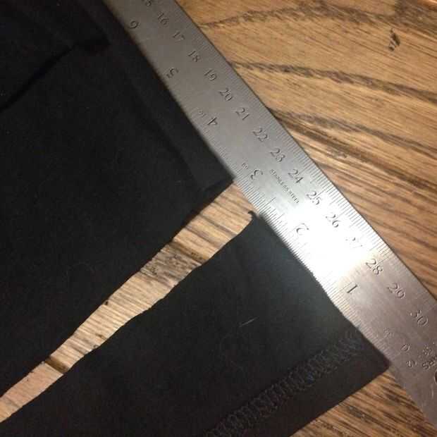 En el paso: Si tu camiseta es un poco demasiado para su gusto, como mina, cortaron un par de pulgadas de la parte inferior, dejando la parte de atrás cerca de 1/2 pulgada a 1 pulgada más largo que la parte delantera. No te preocupes lo hemming - esto se supone que para mirar un poco Grunge.