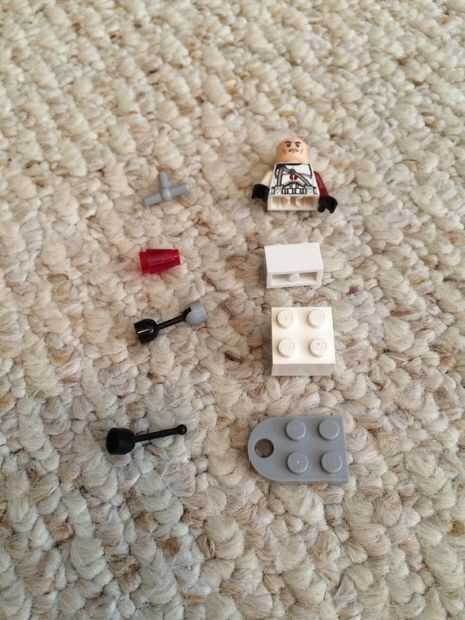 Necesita: 1 ladrillo de 1 x 2 1 ladrillo de 2 x 2 1 placa curvada de 2 x 2 1 mini figura y sin patas 1 1 palanca con otro cono mini de final 1 3 1 barra pieza.