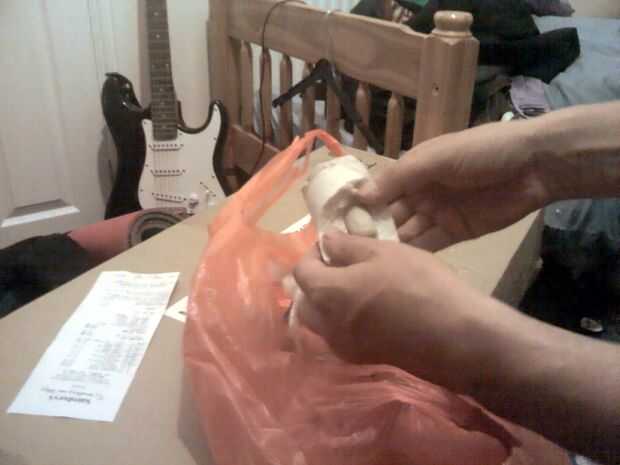 Debe ser capaz de despegar la poder del polvo de alginato y piedra bastante fácilmente, luego retire el alginato de alrededor del dedo. El alginato es bastante frágil por lo que probablemente sólo podrá obtener un fundido del molde.