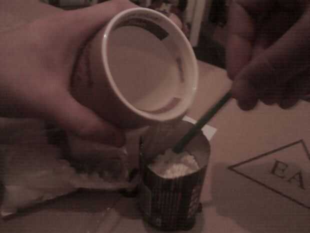 Llenar un tercio del recipiente molde puede con el polvo de alginato, entonces llene otro tercero con agua mientras se mezcla rápidamente durante 30 segundos.