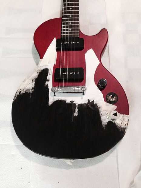 Para pintar la guitarra, utiliza algunos negro, látex pintura conservada y cepillado suavemente la zona quería pintar utilizando sólo pasadas hacia abajo con el pincel, para lograr un patrón de movimiento uniforme. Hice 3 capas de acabado y durabilidad.