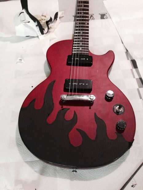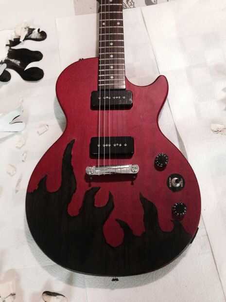 Como se puede ver, una vez que pelan a la plantilla, los bordes de la llama eran muy ásperos, así que hice algunos detalles finos con pincel de un artista. Haciendo así que hace una gran diferencia en la calidad de acabado, como se puede ver en las fotos. (Nota, las partes donde la pintura parece brillante es porque estaba mojada cuando tomé esta foto. Una vez seco, resultó perfectamente incluso, como veremos.)