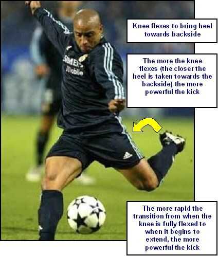 En su último paso, usted quiere no golpeo pie a "sembrar" justo al lado de la bola. Tan pronto como el pie no patado golpea el suelo, la pierna de golpeo debe doblarse en la rodilla que talón casi toques el trasero. Bloquear el tobillo para que el pie es plano y forma una línea recta con su shin.