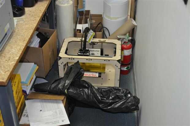 Ya que no puede tener la máquina original visible, tendrá que desaparecer... temporalmente. Nuestro desaparecido a la sala de impresión donde nadie camina a menudo, o parece demasiado duro lo que está en el piso. Un poco camuflaje ayudó a ocultar de miradas indiscretas.