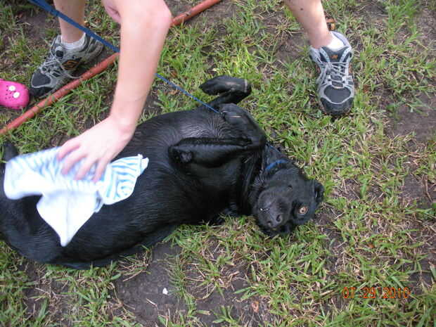 Ahora su perro hacia fuera y tratar de no dejarlos establecer. Minnie lo hizo de repente y ruedan sobre y se convirtió en hoja-PUPPY!!!!!! DEFENSOR DE LA TIERRA. Así que de nuevo en el agua que se fue. JAJAJA Si estás al lado de barro, tratar de salirse, a continuación, secar a su perro con toallas. Tratar de hacer un trabajo minucioso y profundo. Walla! Un baya lindo, limpio, brillante, olor perro que quiero... una delicia desde luego.