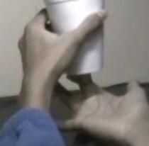 Poner su dedo en el agujero, asegúrese de que parece que sólo están apoyando la Copa desde abajo, pero es realmente uno de los dedos en el agujero.