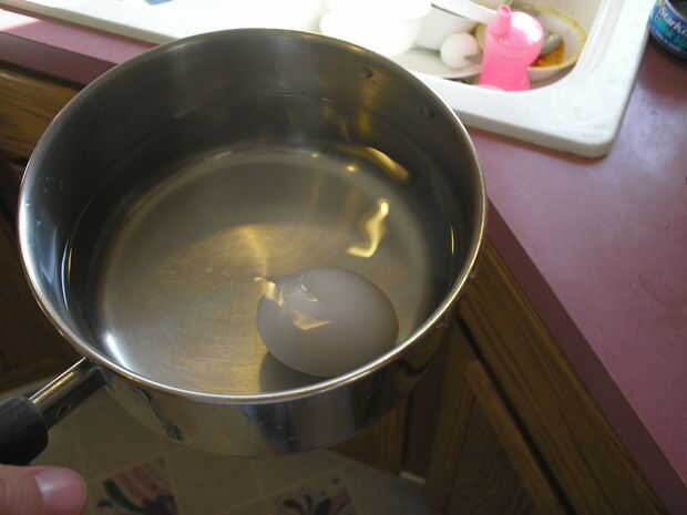 Huevos duros medio toman 8 minutos. Empresa tomar hasta 30 minutos. El secreto revelado aquí es bajar la cáscara sin rompiendo el huevo.Paso 1: Hervir un huevo Poner suficiente agua en la bandeja para cubrir el huevo. Llevar a hervir. Hervir durante