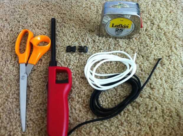 Cosas que usted necesitará:-más ligeros-5 pies de paracord cada de 2 colores (sólo para estar seguro) - tijeras - clip de medidor -1 cinta