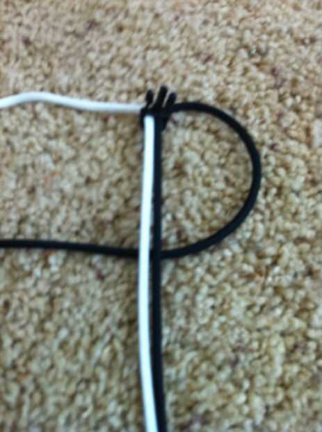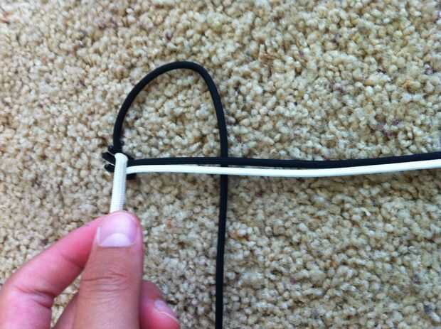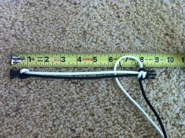 Ahora le enseñará cómo hacer uno o el paracord más simple trenzas, trenza de la cobra. Suavemente levante su pulsera, no dar más holgura que arruinar tu pulsera y hacer lo que yo hago. Si tiene problemas con recordar qué color para alimentar a través del agujero, entonces si te fijas en mis fotos te darás cuenta que va un solo color el conjunto en todas las fotos. Al final de este paso, tendrá dos trenzas hechos. Poner tu pulsera a tu dispositivo de medición. Si no es a la longitud deseada, luego repetir todo este proceso (deshacer la cobra trenzas y tratar de no dar ninguna holgura) otros sabios, pulgar hacia arriba. Ahora seguir haciendo lo que yo simplemente le mostraron. Alternando con los lados es un factor importante.