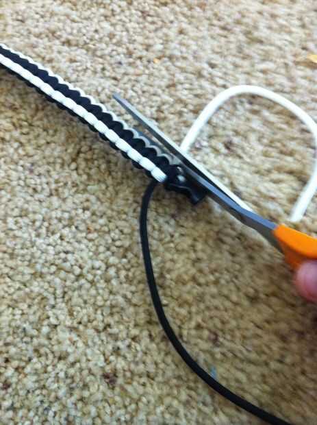Ahora que han puesto tantas trenzas como sea posible y tirado cada trenza apretada, usted puede terminarlo con este último paso. Así has terminó en algún lugar cerca de mi foto. Ahora tenemos que cortar este extremo como en mi foto y luego fundirlo. Ahora tire al otro lado derecho y luego hacer lo mismo. Y whazzam!!! Tienes una pulsera