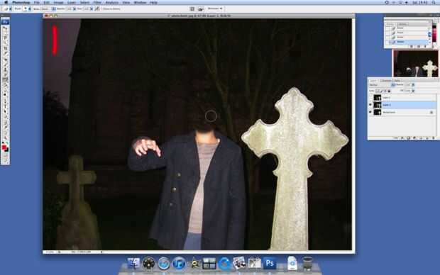 Haga clic en el capa 1 en la paleta y usando la herramienta Borrador quitar la cabeza de la niña.