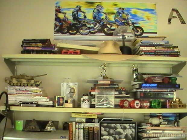 Now, the shelves. Todo lo que realmente tienes que hacer es conseguir un montón de libros que te gusta o que hacen mirar inteligente (como mi amigo, RC-1207SEV) y apilarlas en orden aleatorio en sus estantes. Se ve mejor que realmente organizándolas! Entonces, si usted tiene un montón de knick knacks como yo, entonces sólo configurarlas para que vea únicas. Es muy fácil!