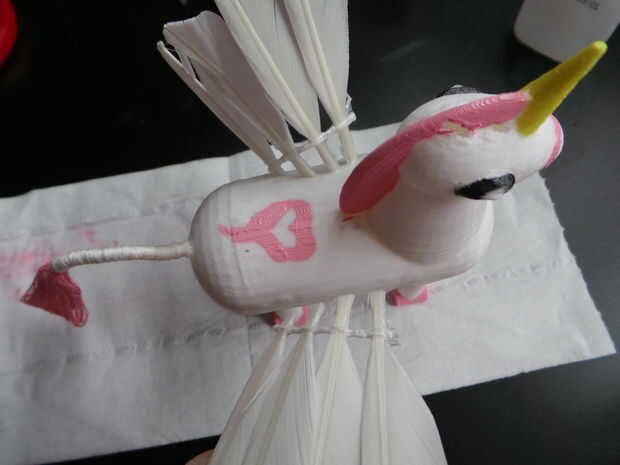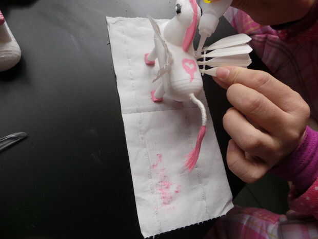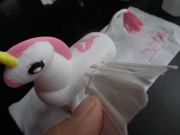 Utilice pegamento para fijar las alas y uñas! Hecho, mi penesas rosa - como el Unicornio.