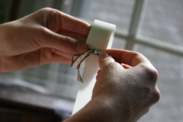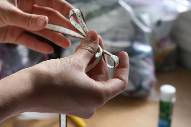 Siguiente hacer los arcos poco hacia fuera de un diverso color de la cinta. Luego pegar un punto de pegamento en la parte trasera y poner dondequiera que quiero.