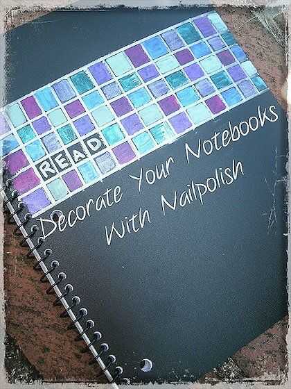 Use nailpolishes diferentes y coloridos para decorar la tapa de su cuaderno/diario. Hacer cualquier diseño o escribir su nombre con el esmalte en la burbuja o de cualquier tipo de escritura y se hacen!