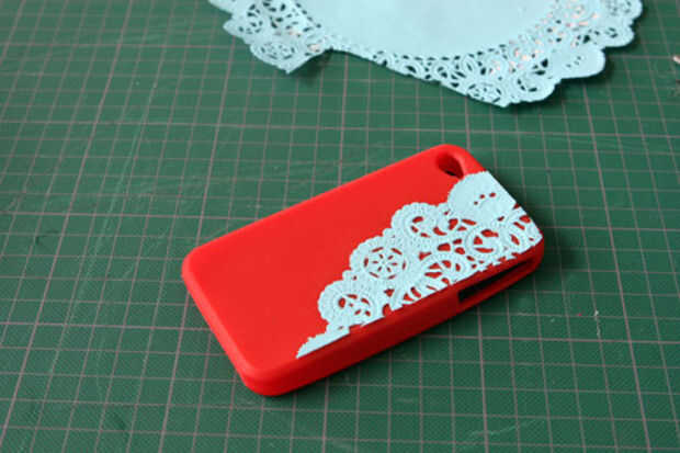 Encaje o tapetitos que cubre caso bonito iPhone. Se puede aplicar fácilmente el cordón con pegamento o Mod Podge, sólo tardará mucho más tiempo para secar. Tapetitos se secarán rápidamente.