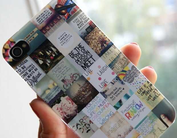 Usted puede personalizar su caja de iPhone con imágenes impresas de Instagram. Generalmente imprimo mis fotos de Instagram usando el sitio web Printstagram pero que en realidad haría este proyecto más difícil ya que son de papel muy grueso. La forma más sencilla de hacer esto es realmente imprimir las fotos mediante impresión en papel normal y que cubre la caja del teléfono con Mod Podge. Aplicar dos cuadros más grandes o hacer un collage en tu equipo de los más pequeños para imprimir. Después de aplicar las imágenes, añadir un poco más en la parte superior para sellar el diseño. No olvides el espacio alrededor de su área de cámara solo.