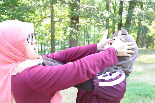 Otra vez, considerar la situación donde el atacante le agarra de la parte delantera de su cuerpo y sus manos están libres al mismo tiempo, estos son algunos pasos que usted puede hacer para salvar tu vida.